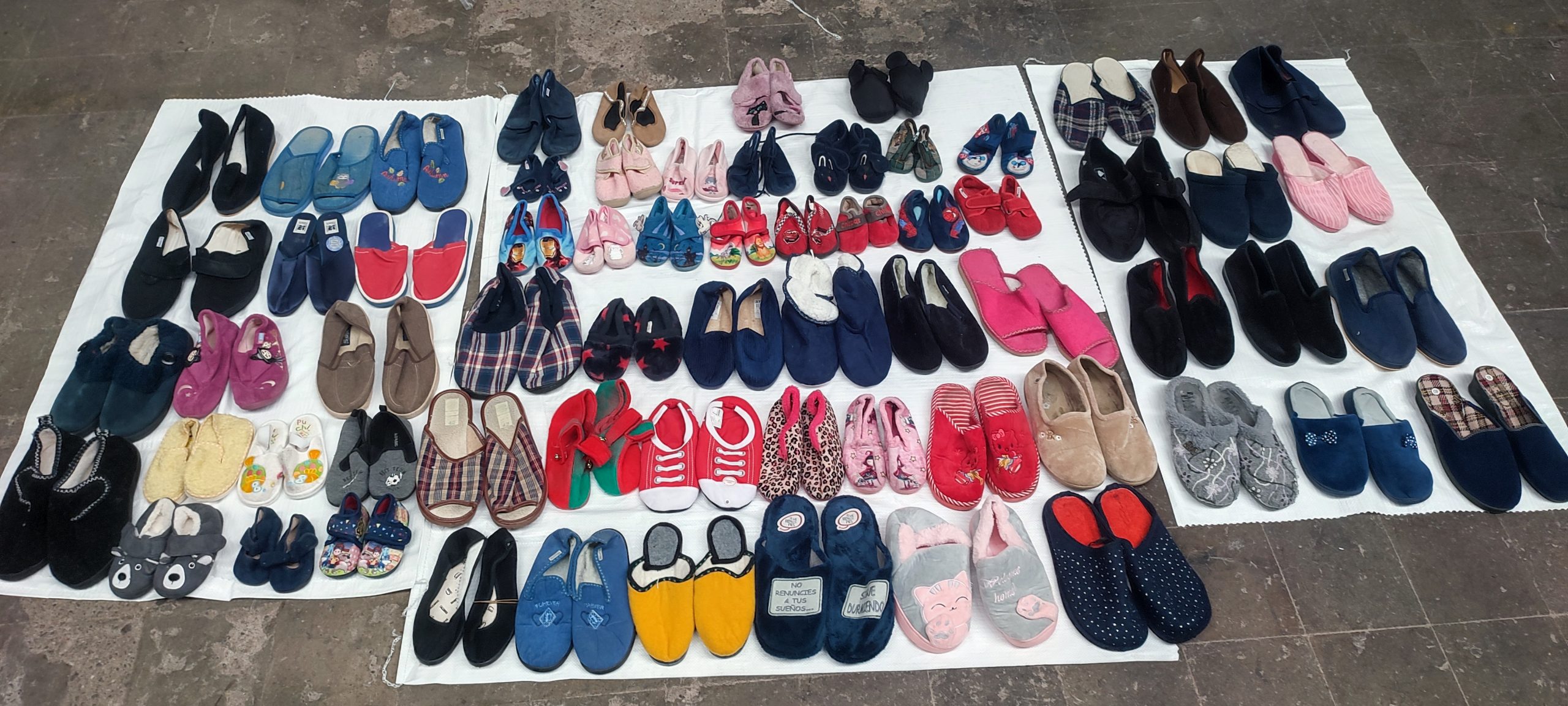Fardo de zapatos pantuflas, de hombre, mujer y niño, calidad primera y premium, variedad de diseños y colores. 20 Kg.
